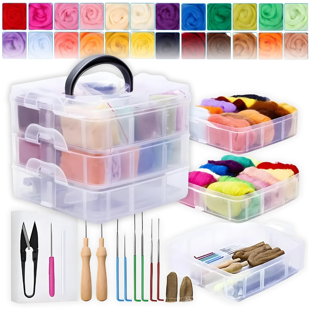 ⭐ ZAČETNI KOMPLET IGLE VOLNA GOBICA ŠKATLA ZA POLSTENJENJE DODATKI VRHOVI 38 KOSOV ⭐