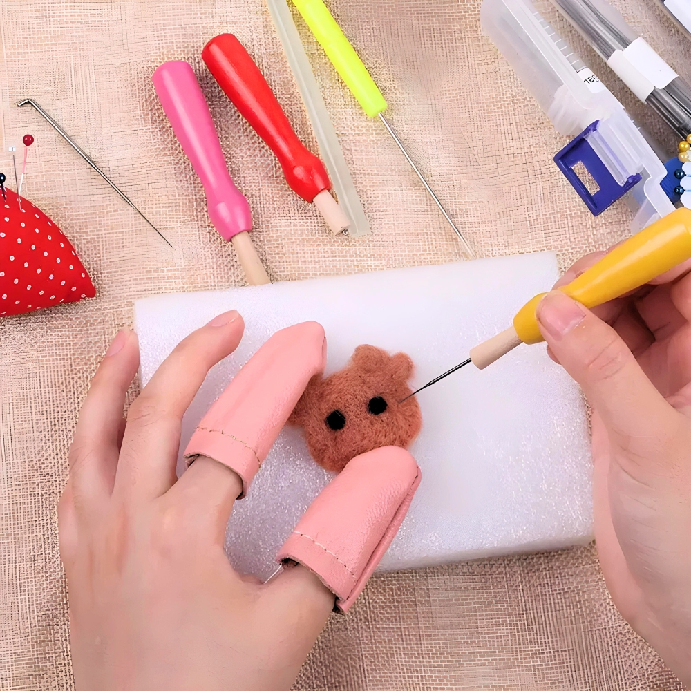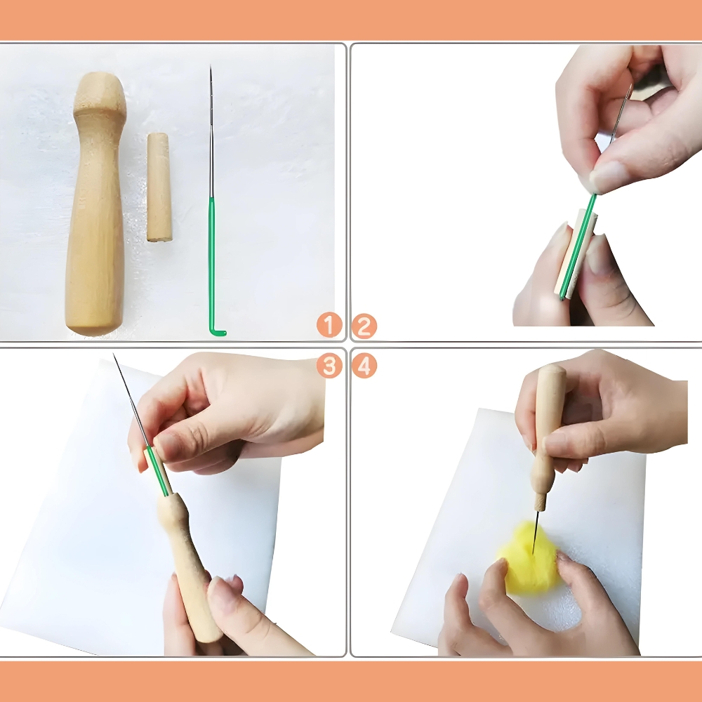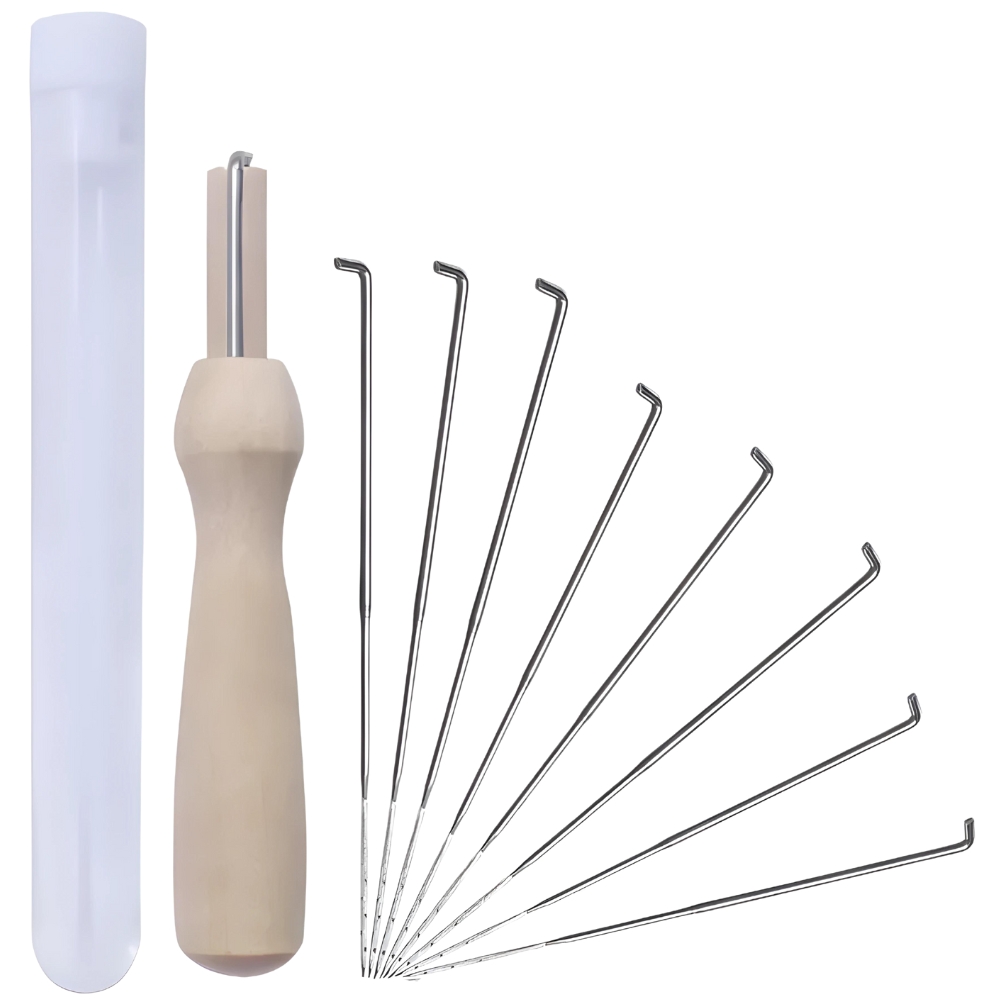 Ni vam treba skrbeti, da bi vam primanjkovalo osnovnega orodja. Naš komplet vsebuje vse, kar potrebujete za začetek: od igel do penaste podloge, škarij in lesenega ročaja .