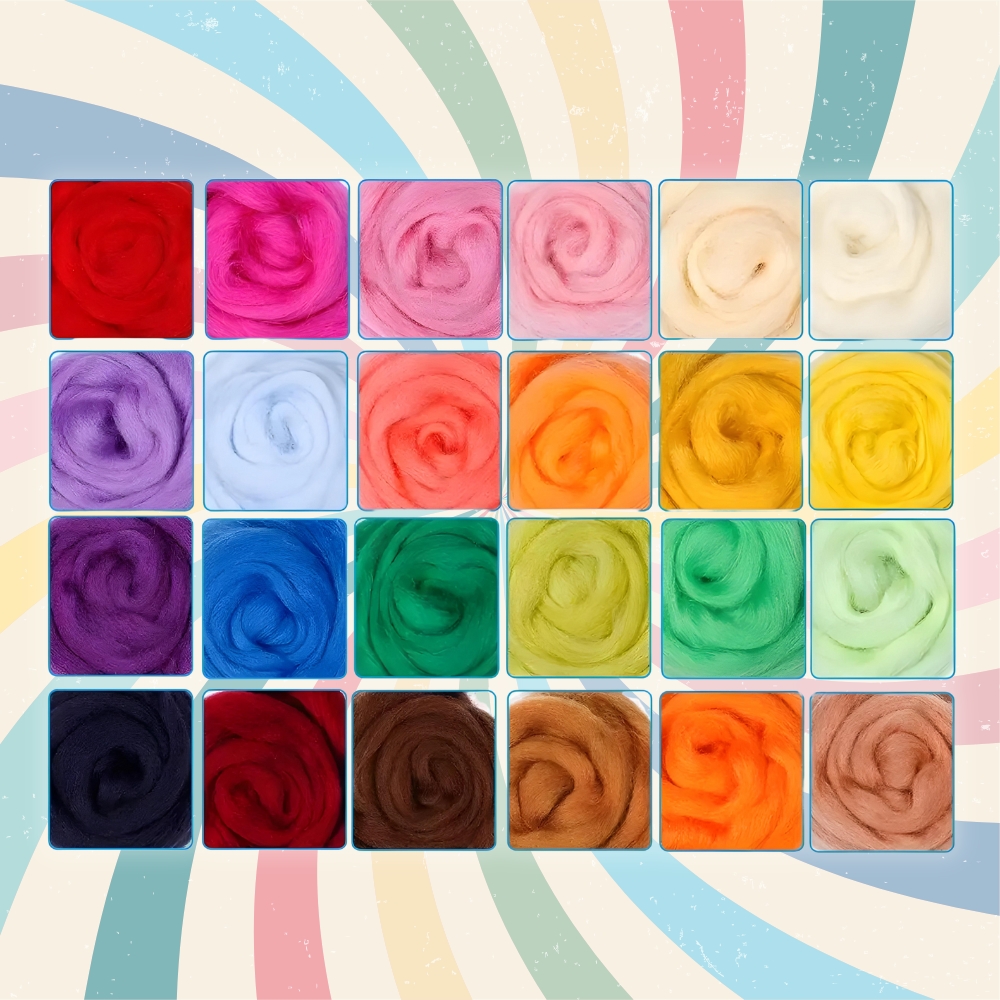Komplet vsebuje 24 živahnih barv volne, zaradi česar bodo vaši projekti polni življenja in izjemno izrazni . Ni omejitev – le veliko barvitega navdiha!