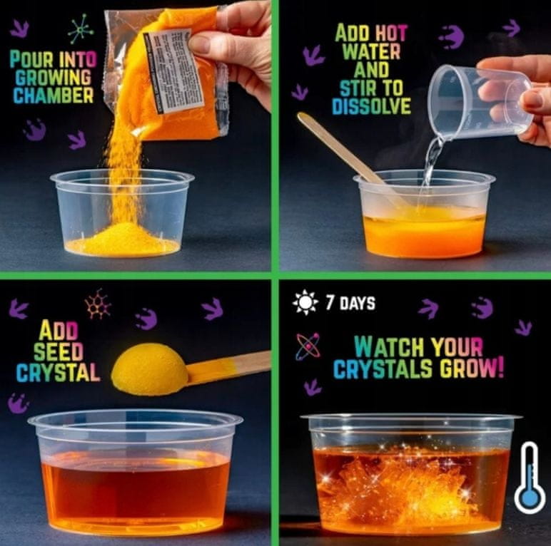 ✅ Razburljiv postopek gojenja kristalov – Vaš otrok lahko opazuje rast kristalov in se skozi vajo uči osnovnih kemijskih načel.