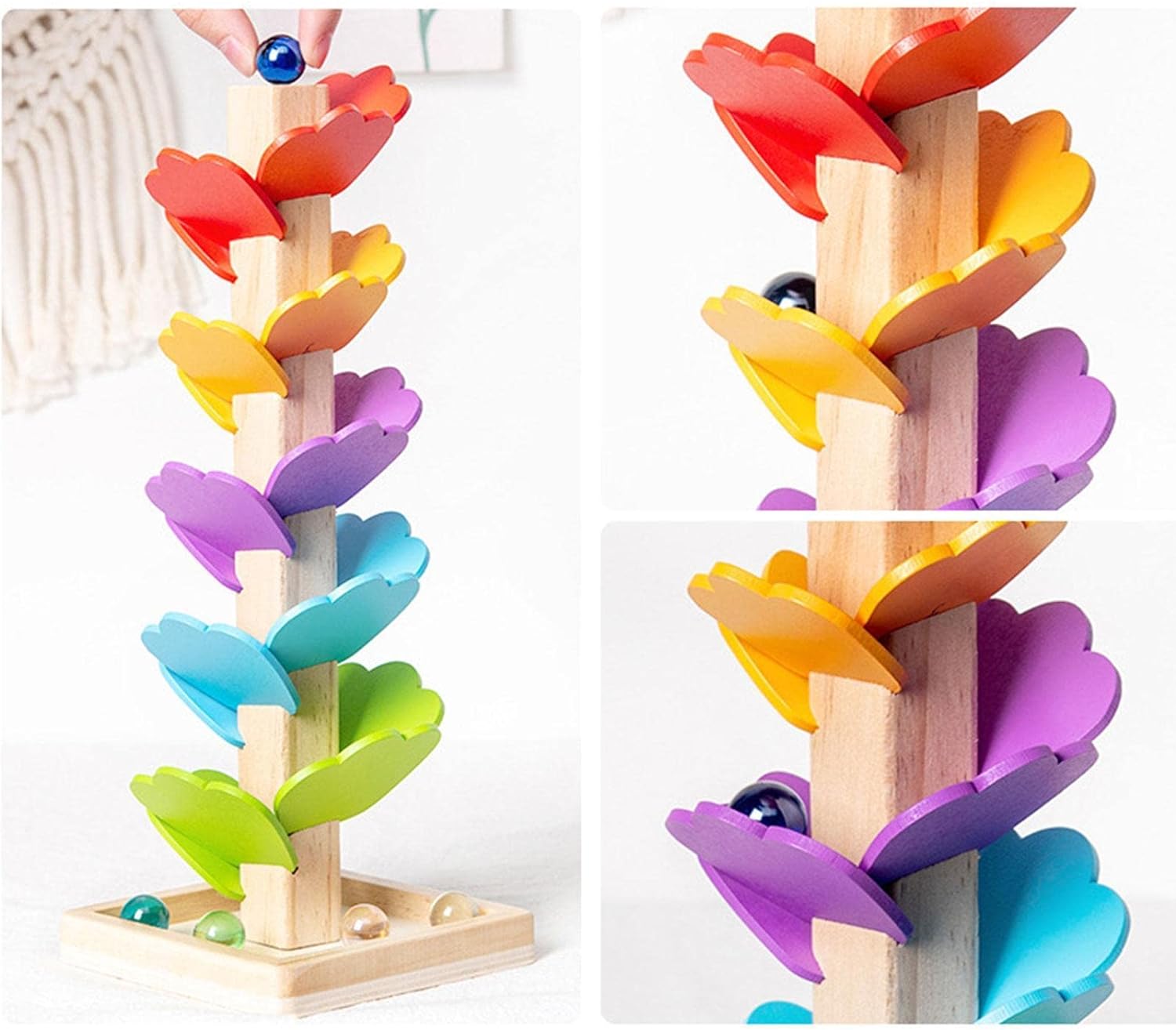 ⭐Kocke imajo zanimivo teksturo in prijetne barve. Odlične so za razvoj fine motorike in senzoričnih sposobnosti. Ta lesen tobogan v obliki drevesa zagotavlja ure zabave. Steza ima 5 nadstropij in 20 pisanih nivojev, ki jih je mogoče spreminjati! Komplet vsebuje 5 žogic