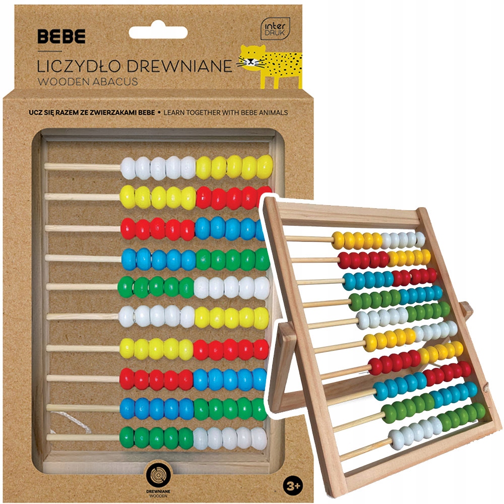 Barvite perlice spodbujajo otroke, da se skozi igro naučijo šteti in uporabljati abakus. Abakus, v celoti izdelan iz lesa, je sestavljen iz 10 vrst pisanih perlic.