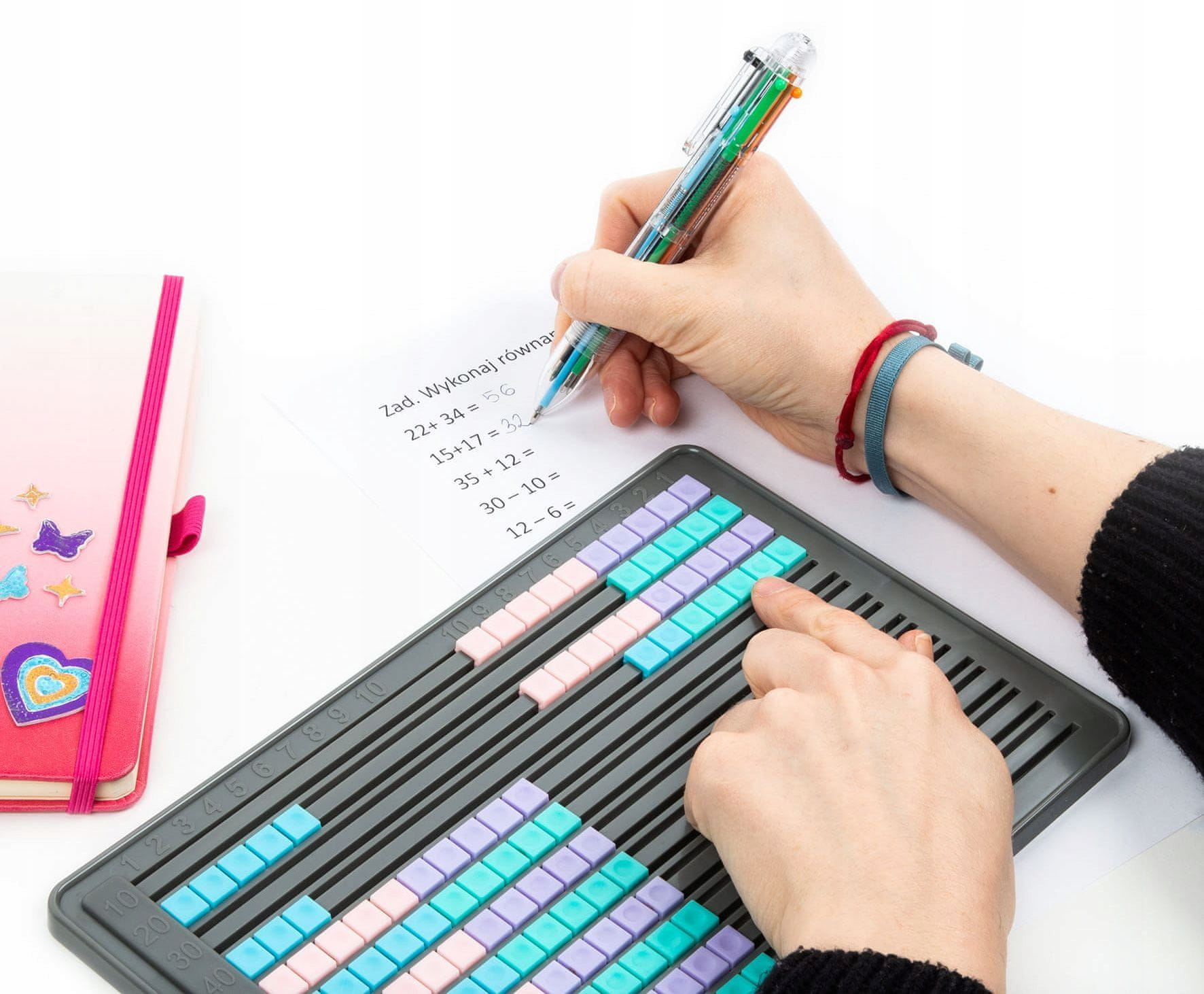 • Abakus je sestavljen iz 10 vrst pisanih pastelnih perlic . Pastelne perlice v zeleni, modri, vijolični in roza barvi bodo pomagale pri učenju seštevanja, odštevanja in množenja. Abakus je nenadomestljiv učni pripomoček pri učenju matematike.