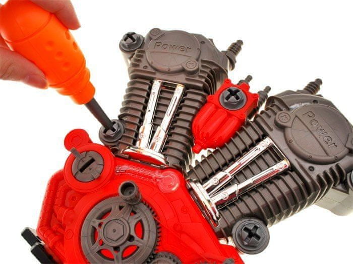 Igrača v obliki motorja z zvočnimi učinki, možnostjo vrtenja in preverjanja delovanja batov motorja.