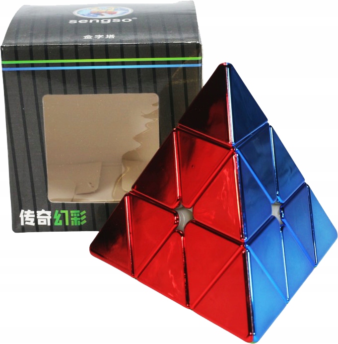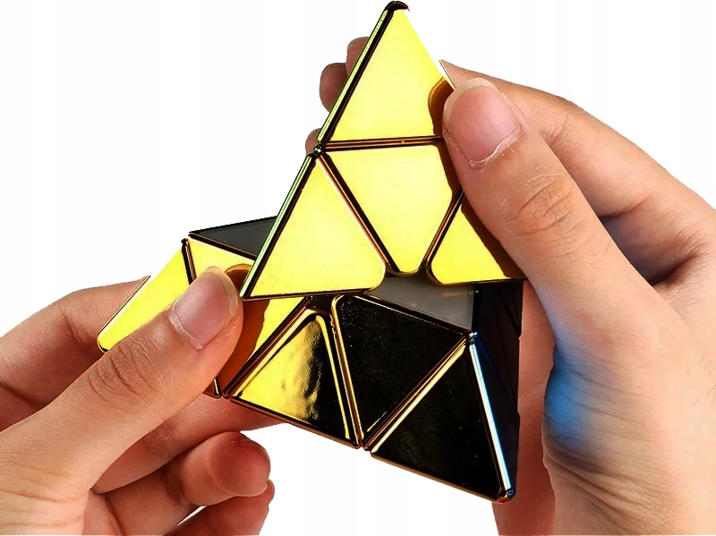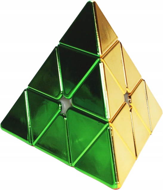 Navadna kocka Pyraminx v nenavadni različici imitacije zrcalne prevleke. Kocka je v celoti plastična, kovinska plastika, ki daje neverjeten odsevni učinek, se tudi opraska, kar je treba upoštevati pri nakupu.