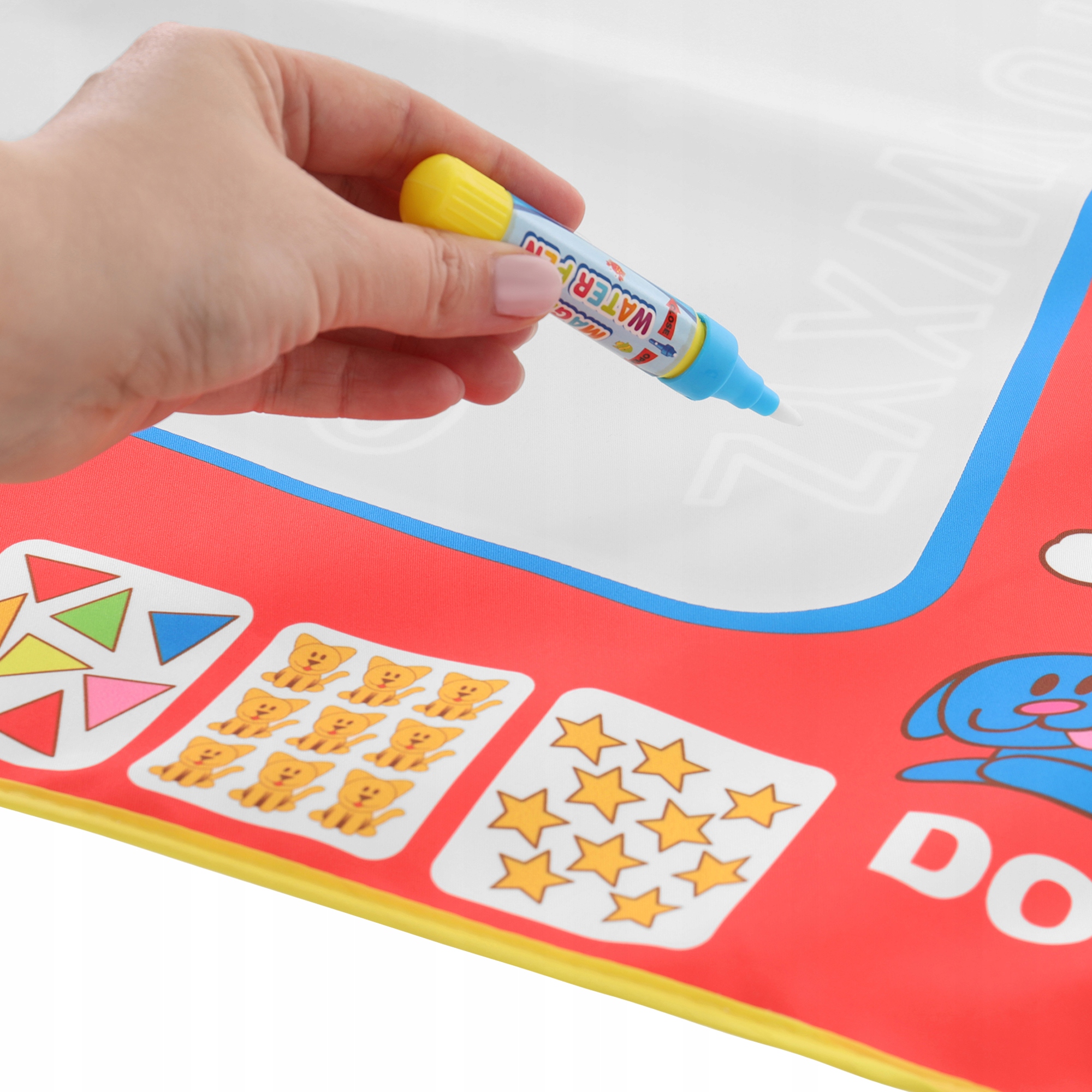 Ker igrača deluje le, ko so pisala napolnjena z vodo, je varna tudi za najmlajše uporabnike. Ni vam treba skrbeti, da bi vaš otrok dobil barvo na kožo ali dal škodljive snovi v usta.