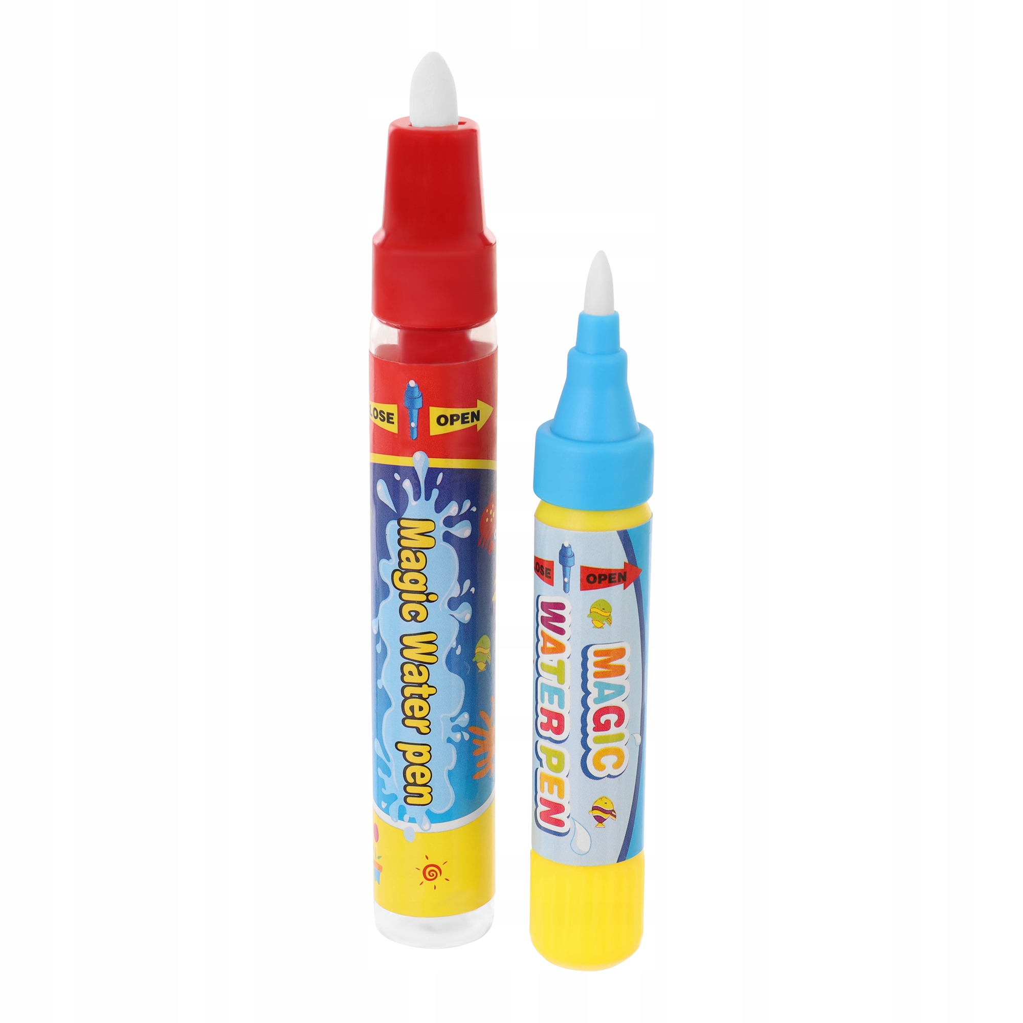 Komplet vsebuje 2 edinstvena vodna markerja. Samo napolnite ju s tekočino in pripravljeni ste! Vaš malček lahko z njimi riše po podlogi na varen način brez kemikalij. Ni vam treba skrbeti, da se bo med igro umazala.