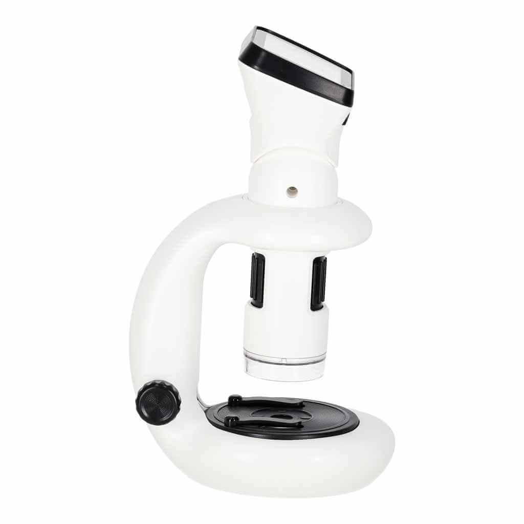 Profesionalni dodatki v kompletu vključujejo: Skalpel – za natančno rezanje in ločevanje vzorcev. Konica – za dvigovanje in stabilizacijo raziskovalnega materiala. Lopatica – za priročno vzorčenje in prenos vzorcev. Pinceta – za varno prijemanje majhnih elementov. Tehnični parametri: Starost: 6+ Material: plastika Barva: bela s črno Povečava: 200× – 1000× Ločljivost slike: 640×480 / 1280×960 / 1600×1200 / 2048×720 px