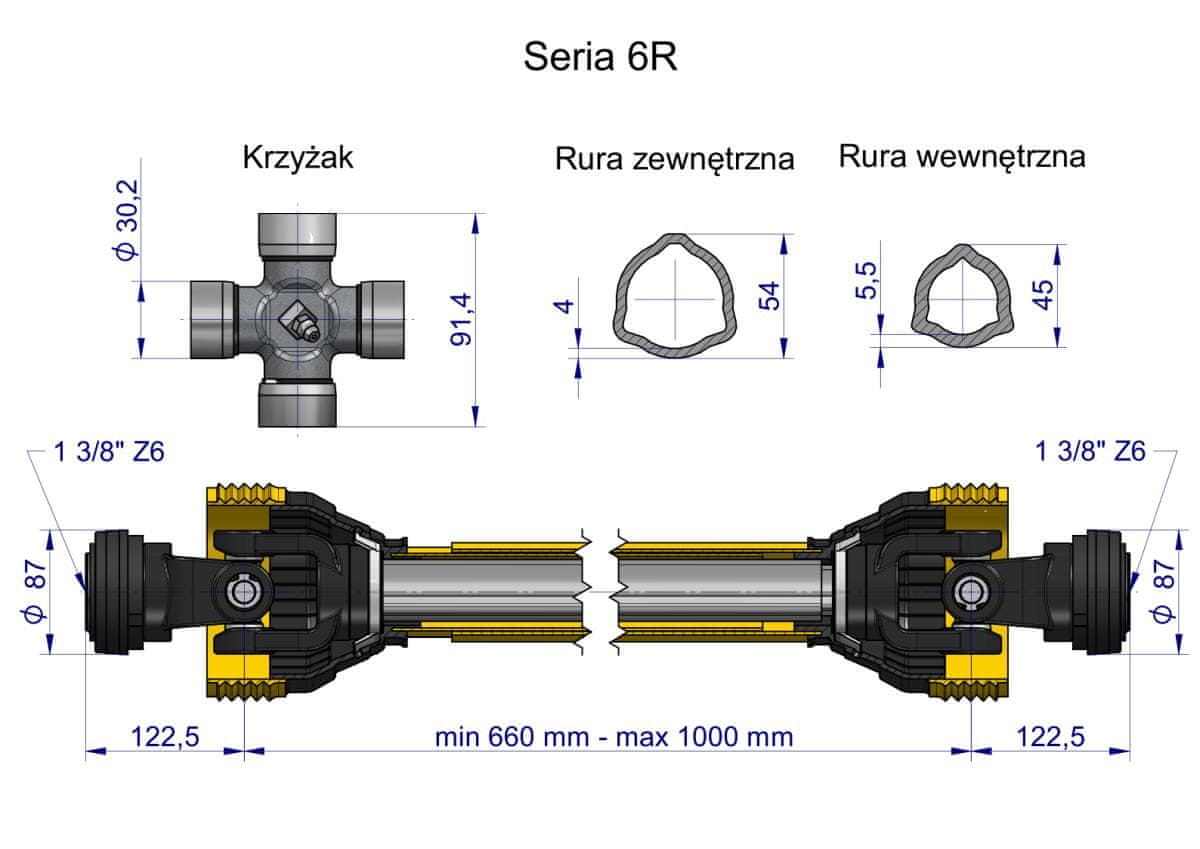 Teleskopska zglobna gred 660–1000 mm 830N CE 2020 serija 6R WARYŃSKI Celoten opis