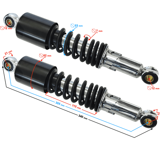 • Skupna dolžina amortizerja: 340 mm