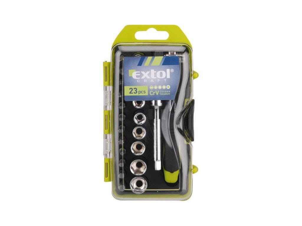 Extol Craft Izvijač z ragljo z maticami in nastavki, komplet 23 kosov, 53090