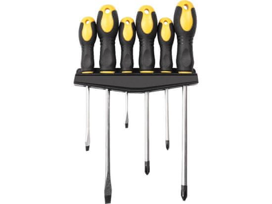 Komplet 6 ploščatih in križnih izvijačev. Komplet vključuje praktično stensko držalo ali stensko ploščo. Celoten opis