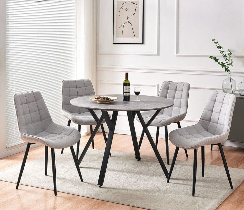 Potrebujete preprosto okroglo mizo, ampak ne želite da je čisto navadna? Potem je jedilna miza SEVILIA odlična izbira za vas! Narejena je iz 1,8 cm debelega MDF-a v sivi barvi, s kovinskim podnožjem unikatnega razgibanega dizajna. Inovativno postavljene kovinske cevi ponožja so diametra 25×55 mm in prašno lakirane v črno barvo.