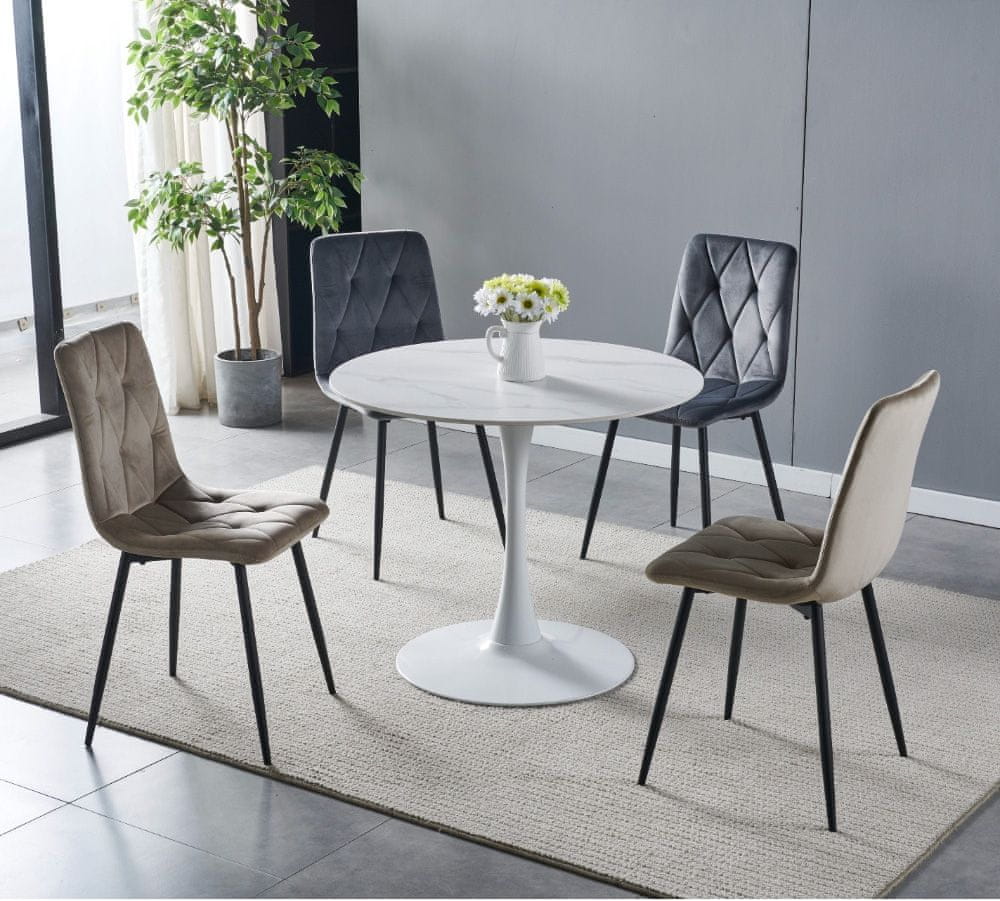 Iščete manjšo mizo, ki bo v vaš prostor prinesla čist in moderen videz? Potem je okrogla miza Interlaken 1 odlična izbira za vas! Čudovit vzorec belega marmorja na 1,2cm debeli plošči se bo odlično podal v vsak prostor. Za visoko kakovost mize poskrbi sintrani kamen iz katerega je narejena, saj je ta veliko močnejši od klasične keramike, poleg tega je pa še vodoodporen za razliko od granita in prijazen do okolja.