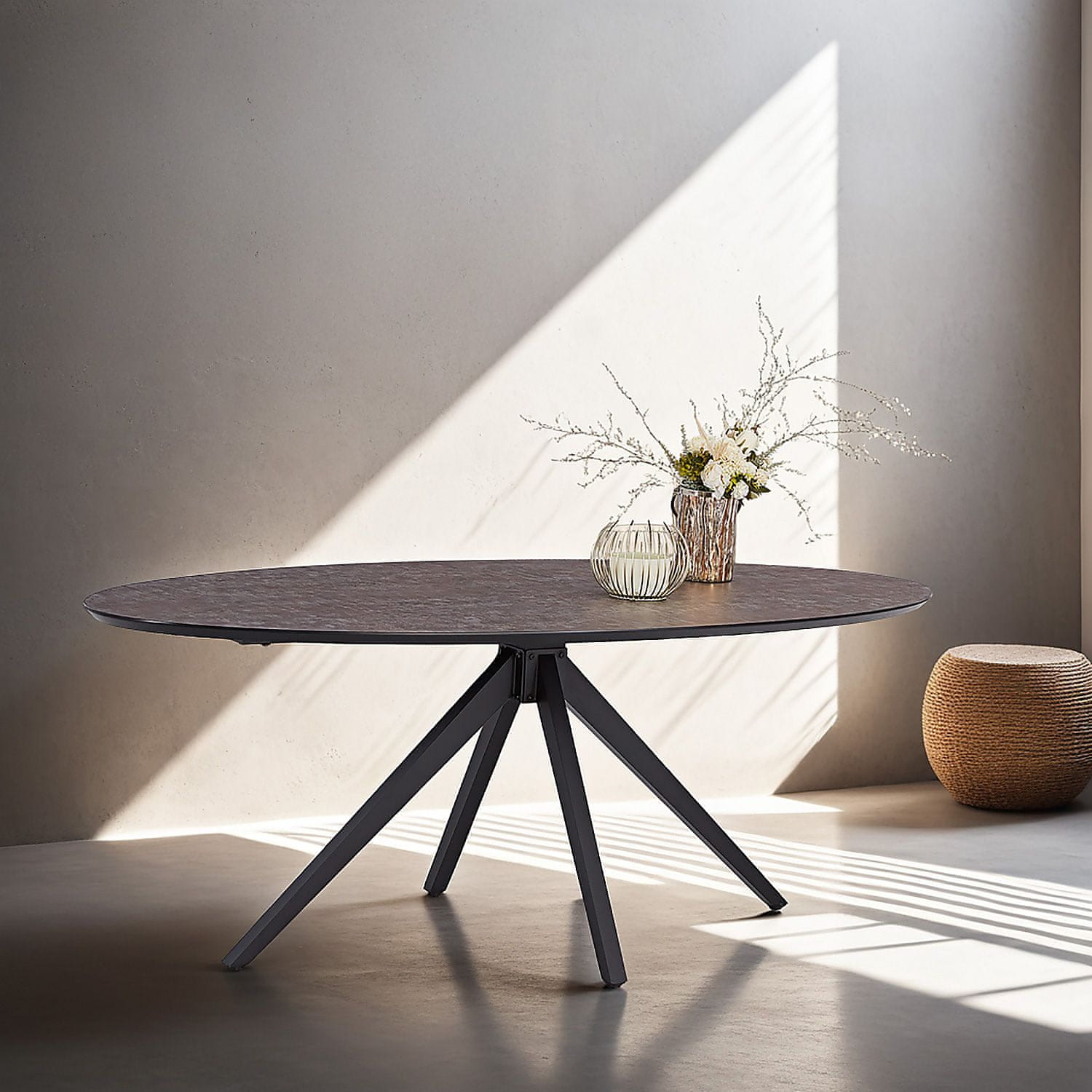 Ta sodobna ovalna jedilna miza se ponaša z elegantnim industrijskim dizajnom, zaradi česar je osrednji kos za druženja in obroke. Njena vzdržljiva, enostavna za vzdrževanje površina in stabilen okvir zagotavljata eleganco in praktičnost za vsakodnevno uporabo. Celoten opis