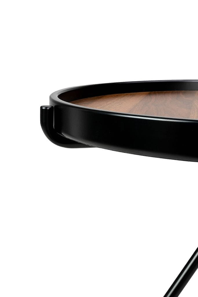 Miza TOBY je kombinacija elegantne črne in temno rjave barve. Barve zemlje naredijo notranjost prijetno. Namizna plošča je izdelana iz visoko kakovostne MDF plošče z orehovim furnirjem. Odstranljiv je. Spodaj je obložen z mehkim črnim semišem, zato ga lahko uporabljamo kot pladenj. Trdne noge iz jek Celoten opis