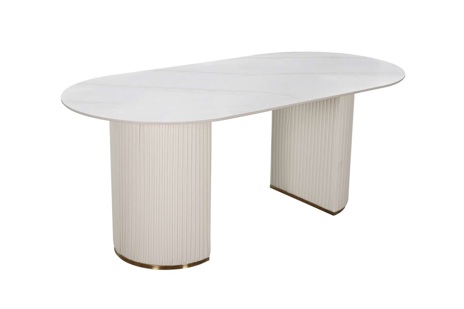 Ta sodobna miza ima eleganten ovalen vrh z marmornim videzom in značilno oblikovano podnožje, zaradi česar je izjemen osrednji kos vsake jedilnice. Idealna za druženja, združuje eleganco s sodobnim pridihom. Celoten opis