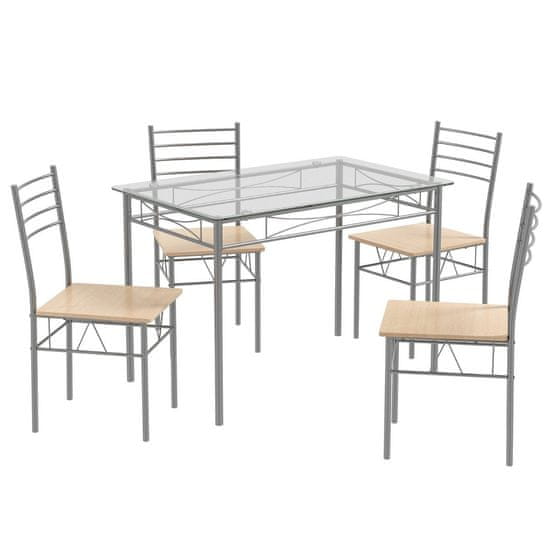 Northix 5-delna steklena jedilna garnitura s 4 stoli in nerjavečim kovinskim okvirjem