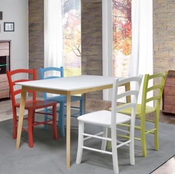 Jedilna miza Loxy je trendovskega videza. Ima ploščobeli mat barvi in nogebukev natur barvi. Je v velikosti 138 × 80 cm.