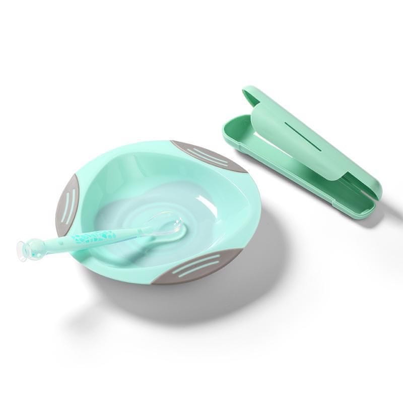 BabyOno Silikonska žlica s pokrovom zelena 6m+