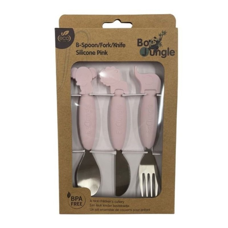 Bo Jungle Pribor silikon + nerjaveče jeklo Roza