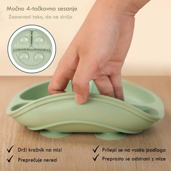 ŠTIRITOČKOVNA VAKUUMSKA PRITRDITEV DRŽI OTROKOV KROŽNIK NA MESTU