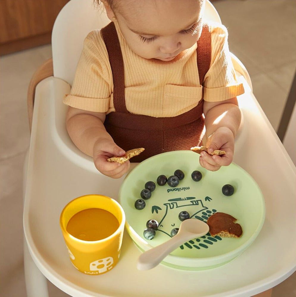 Set je idealen za otroke, ki začnejo z dopolnilno hrano. Izdelan je iz polipropilena in živilske silikona, ki sta brez BPA, kar zagotavlja varnost otroka. Enostavno vzdrževanje je zagotovljeno – celoten set je mogoče varno prati v pomivalnem stroju in uporabljati v mikrovalovni pečici.