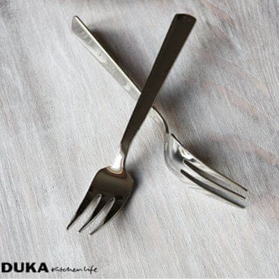 če iščete praktične in hkrati skrbno izdelane predmete posode, vas univerzalni set duka ne bo pustil neopažene. Sestavlja ga 6 vilic za torte, ki navdušujejo s funkcionalno, brezčasno obliko in brezhibno sijočo površino iz poliranega nerjavečega jekla. Zaradi elegantnega zaključka je set duka universal primeren tako za družinska srečanja kot za elegantne večerje s prijatelji. Poleg tega lahko vilice duka universal po uporabi preprosto operete v pomivalnem stroju, brez skrbi, da bi opraskali njihovo popolnoma gladko površino.