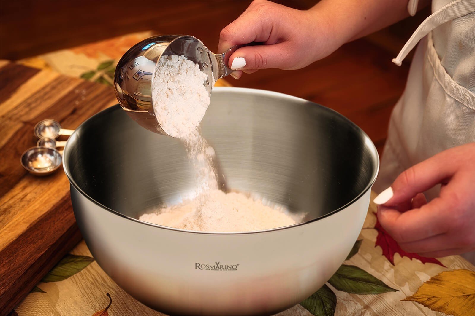 Jeklena posoda za mešanje znamke Rosmarino s premerom 24 cm prihaja iz linije Pour & Cook. Posoda je vsestransko uporabna, v njej lahko mešate solate, priloge, mešate sestavine za pripravo sladic ali drugih pekovskih izdelkov. Izdelana je iz kakovostnega nerjavečega jekla, odpornega na praske, udrtine in madeže po pranju. Zaradi svoje odpornosti na nižje temperature je primerna tudi za shranjevanje hrane v zamrzovalniku. Posoda ne absorbira vonjav in je primerna za pomivanje v pomivalnem stroju. Med uporabo je ne drgnite z ostrimi kovinskimi predmeti.
