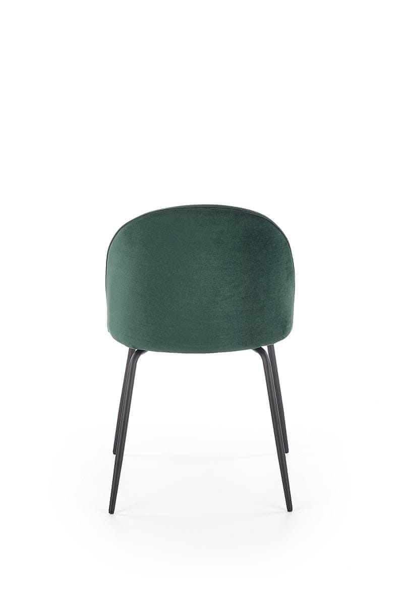 Stilski jedilni stol K314 je primeren za postavitev v moderno opremljeno jedilnico ali kuhinjo. Noge so izdelane iz črno lakiranega jekla, sedež pa je oblazinjen z očarljivo temno zeleno tkanino. Če vam barva ne ustreza, je stol na voljo tudi v drugi barvi. Dimenzije stola so (ŠxGxV): 52×50×80 cm. Višina sedeža je 48 cm. Posodobite svoj dom in uživajte v dobrem obroku na tem čudovitem elegantnem stolu.