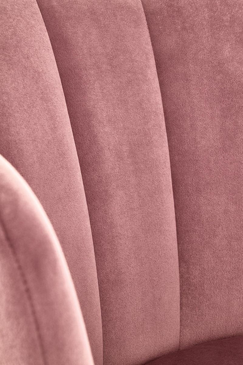 Zaljubili se boste v edinstven jedilni stol K386 zaradi njegovega čudovitega dizajna naslonjala v obliki školjke. Je idealna rešitev za elegantne dnevne sobe, jedilnice, lahko pa se uporablja tudi kot fotelj za toaletno mizico. Kamorkoli ga boste postavili, bo prevzel svojo vlogo in vam zagotovil udobje in udobje, da se boste dobro počutili. Oblazinjen je z mehkim žametnim blagom v brezčasnem roza dizajnu. Visoke črne noge iz prašno lakiranega jekla mu dajejo čar in eleganco. Dimenzije fotelja so (ŠxGxV): 60×58×84 cm, višina sedišča pa 48 cm. Dostavljen je razstavljen, njegova maksimalna nosilnost je 100 kg. Jedilni stol K386 bo vaš dom naredil edinstven in harmoničen prostor.