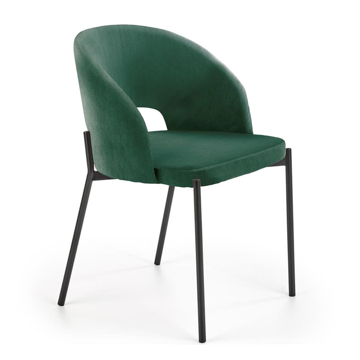 V popoln dizajn in edinstven slog jedilnega stola K455 se boste zaljubili na prvi pogled. Že sam dizajn stola nakazuje njegovo maksimalno priročnost in udobje pri sedenju, o čemer se boste prepričali takoj, ko se usedete nanj. Oblazinjen je v mehko, na dotik prijetno žametno blago v brezčasni temno zeleni izvedbi. Njegove visoke, vitke noge so izdelane iz jekla s črnim praškastim premazom. Dimenzije stola so (ŠxGxV): 51×57×77 cm, medtem ko je višina sedišča 47 cm. Njegova maksimalna nosilnost je 100 kg in je dostavljen razstavljen.