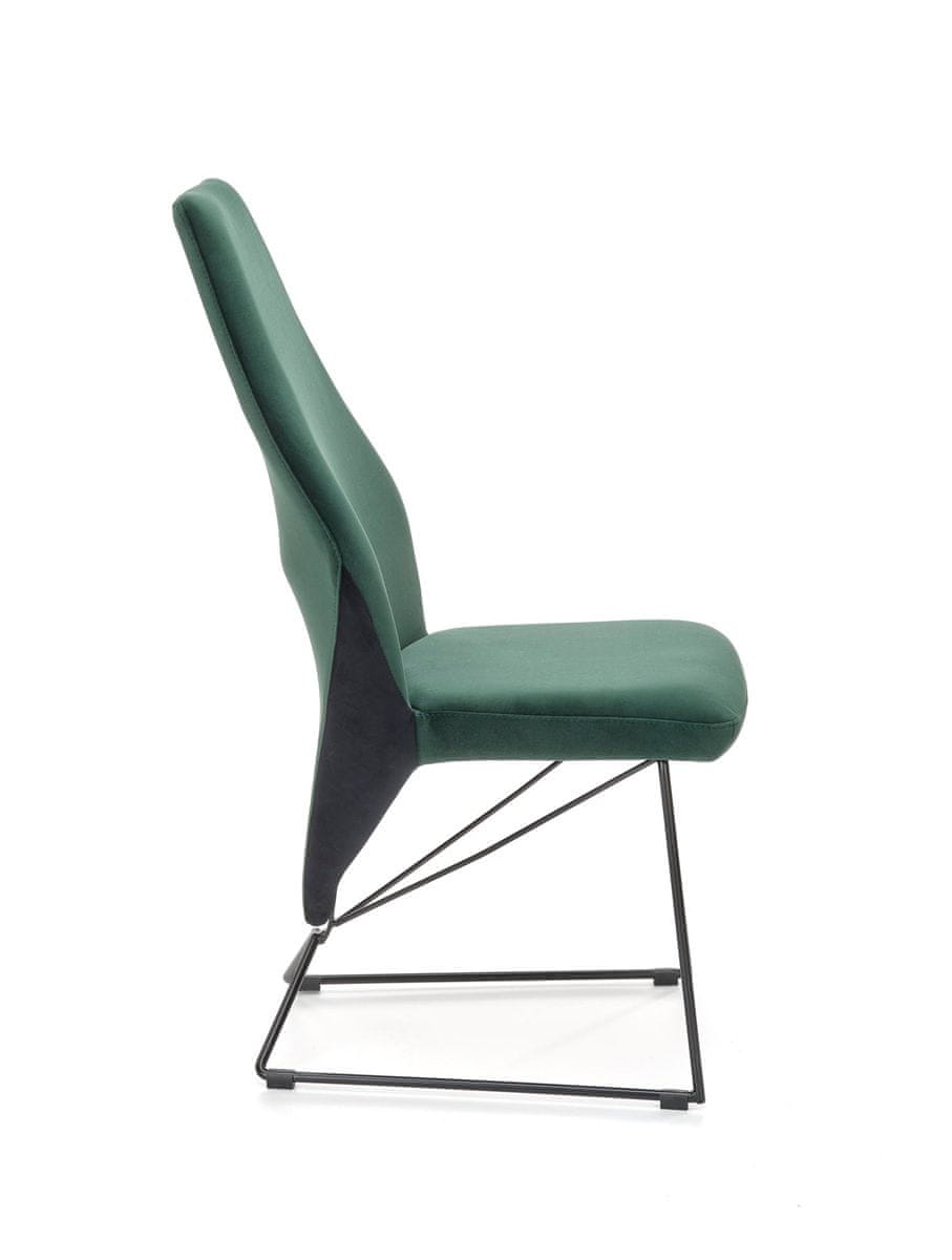 Jedilniški stol K485 blagovne znamke HALMAR je moderen dodatek vsakemu interierju. S temno zeleno barvo in črnimi detajli bo v vaš prostor vnesel svežino in eleganco. Stol je izdelan iz visokokakovostne tkanine in prašnega jekla, kar mu zagotavlja dolgo življenjsko dobo in stabilnost.