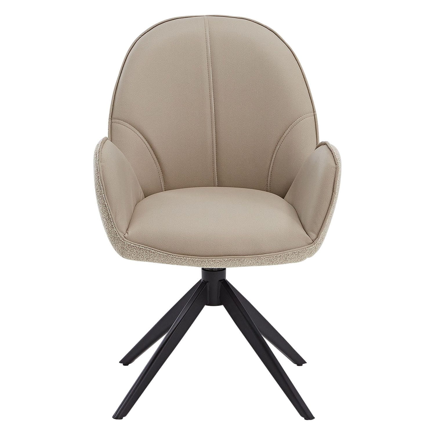 S tem kompletom 6 modernih jedilnih stolov lahko ustvarite prijeten prostor za druženje, obedovanje in sprostitev. Stoli imajo eleganten dizajn v bež barvi, ki združuje mehko bouclé in umetno usnje za prefinjeno ter udobno sedenje. Njihova ergonomska školjka sedeža, vrtljiva funkcija in robusten kovinski okvir jih naredijo za stilsko in praktično izbiro za vsako jedilnico ali dnevni prostor.