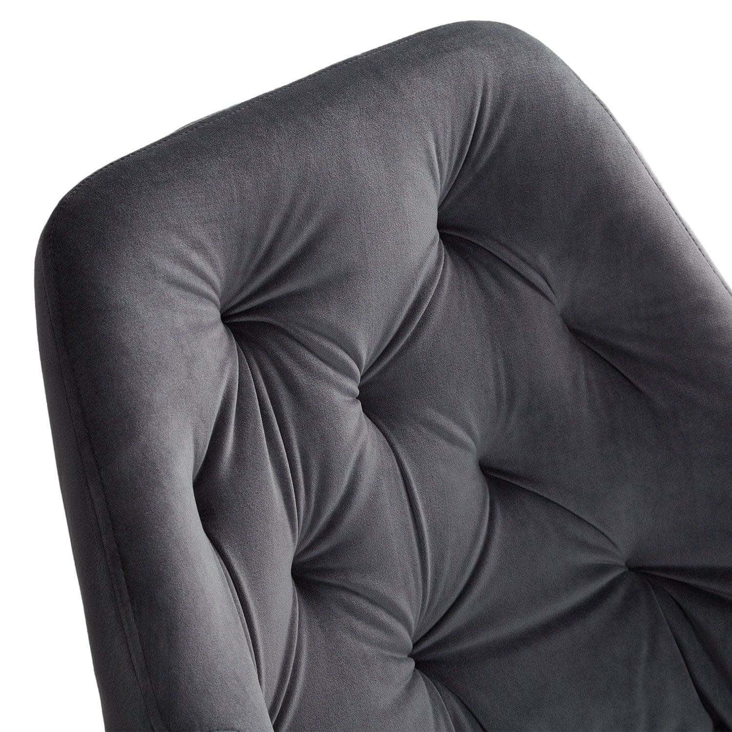 Vzemite si čas za udobje s tem kompletom dveh modernih jedilnih stolov, zasnovanih za popestritev vaše jedilnice, dnevne sobe ali delovnega prostora. Oblazinjena v mehko sivo žametno tkanino, ta naslonjača ponujata stilsko in prijetno rešitev za sedenje, primerno za različne notranje prostore. Močne črne kovinske noge zagotavljajo stabilnost, ergonomska oblika pa prijetno izkušnjo sedenja za vsakodnevno uporabo.