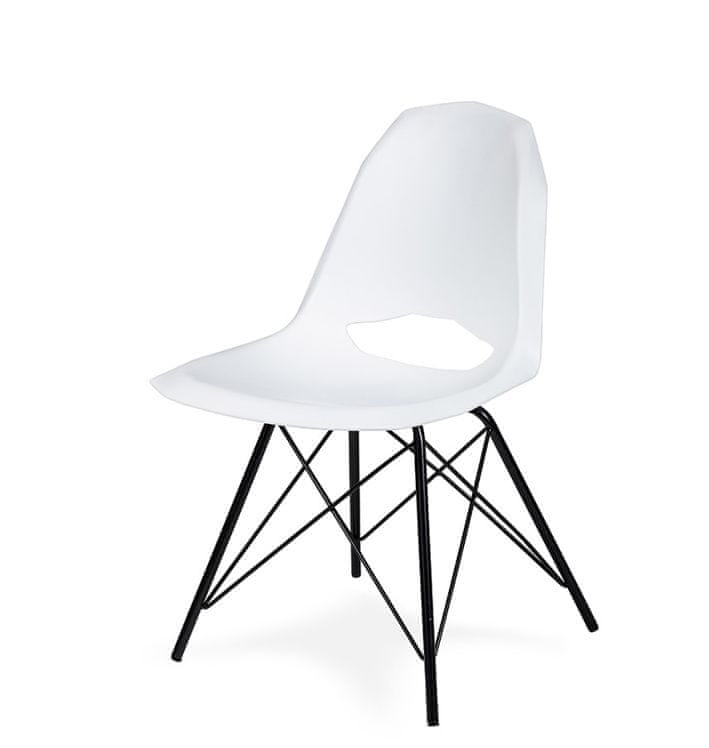 KINGHOME GULAR DSM stol bele barve - polipropilen, črno kovinsko podnožje