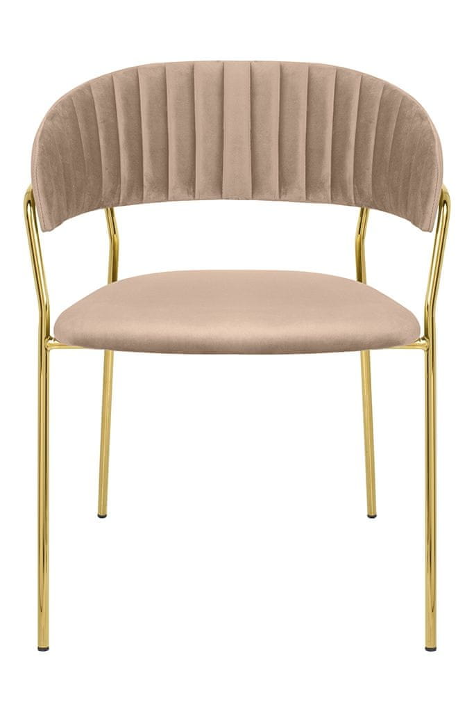 Stol Margo v modni kaki barvi. Sedež in naslonjalo oblazinjeno z mehkim in prijetnim na dotik velurjem. Navpični šivi na naslonjalu dodajo eleganco. Stol, ki se popolnoma prilega moderni in klasični notranjosti. Širina sedeža: 48 cm Globina sedeža: 45 cm Višina naslonjala: 34 cm Neto teža na kos: 5, Celoten opis