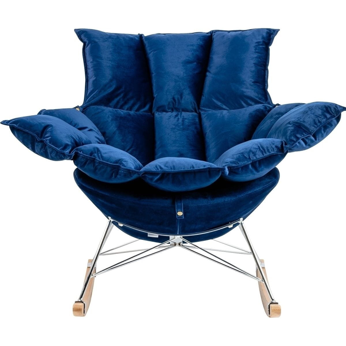 KINGHOME Nihajni stol SWING VELVET temno modra - velur, kromirano jeklo, bukov les