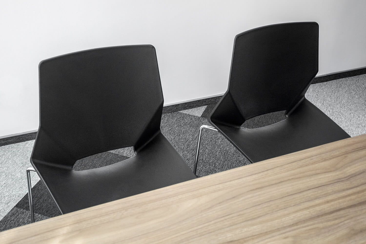 • stol ima drugačno, neopazno obliko zaradi konkavnih elementov v naslonjalu, ki jih povezuje podolgovata luknja – to doda ščepec modernosti in minimalizma, kjer kraljujejo geometrijske oblike in krivulje