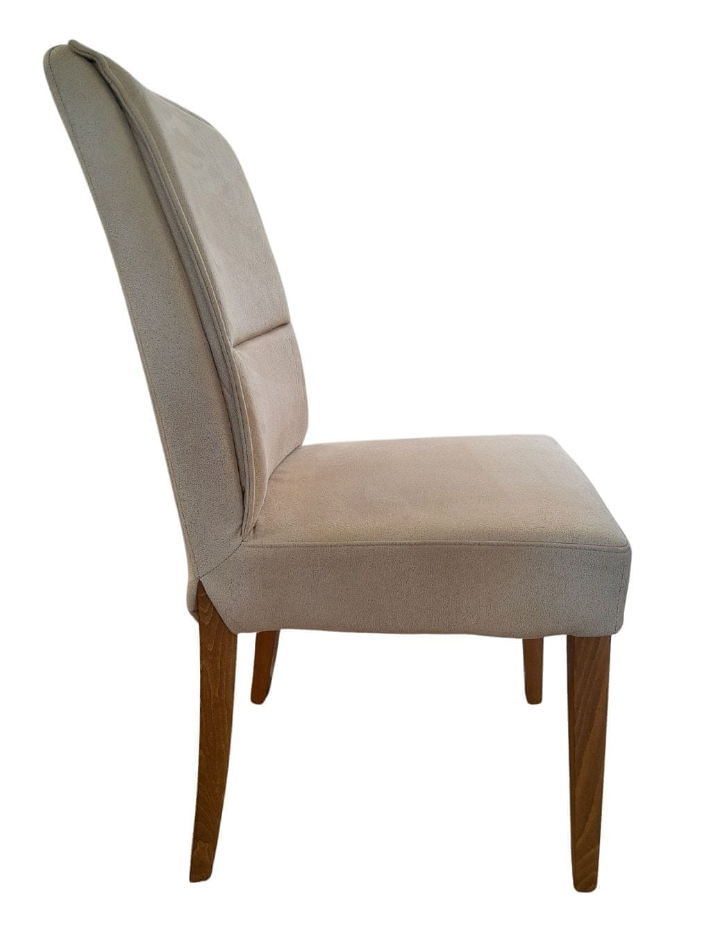Moderen jedilniški stol MARTA v bež barvi kombinirani s temno bukvijo. Celoten opis