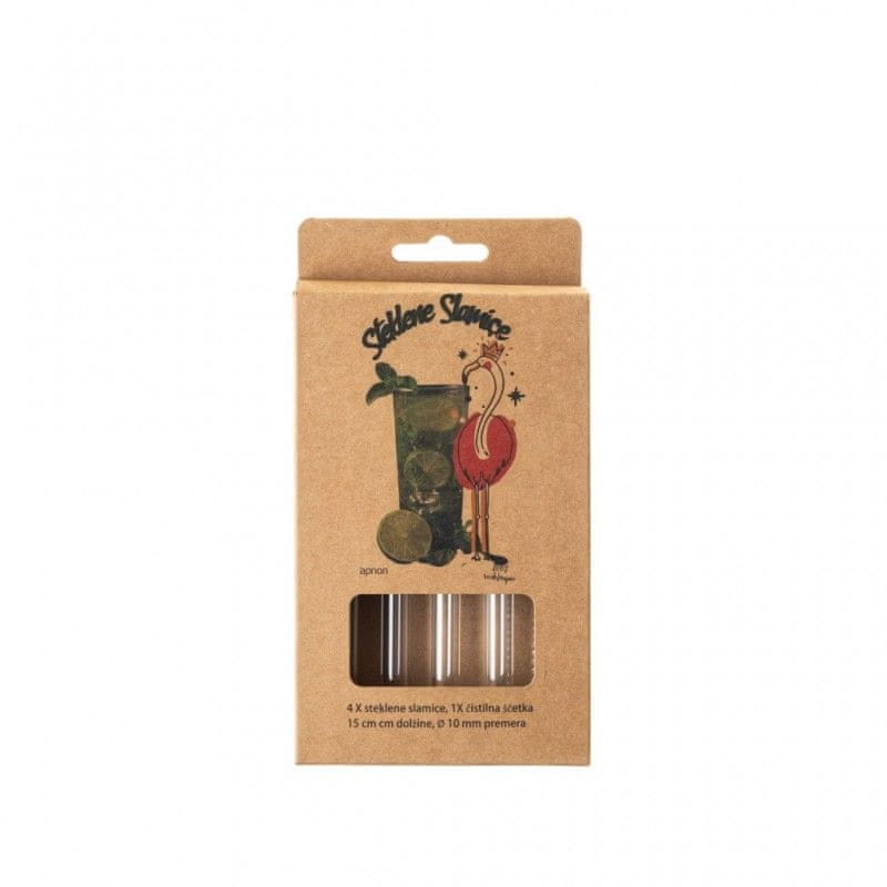 Apriori Set 4 steklenih slamic s ščetko - ravne 15 cm