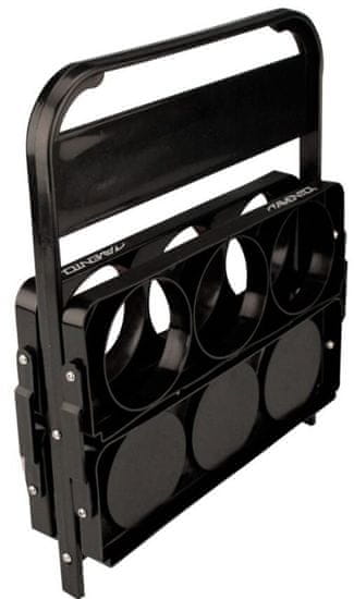 Zložljiv nosilec za 6 steklenic z največjim premerom 75 cm. Praktičen pripomoček za vadbo ali prostočasne dejavnosti. Prodaja se v več pakiranjih 3ks. Celoten opis
