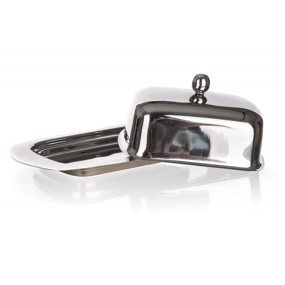 AKCENTova skledica za maslo iz nerjavečega jekla je idealen pripomoček za shranjevanje masla v hladilniku in postrežbo pri zajtrku. Dimenzije: 18,5 × 12,5 × 8,5 cm.