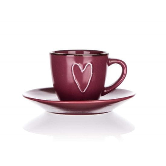Banquet Skodelica in krožnik HEART 80 ml, bordo, komplet 8 kosov