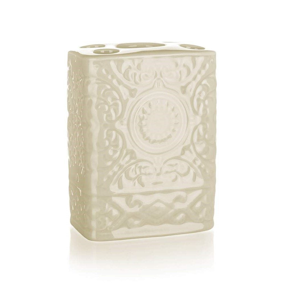 Keramična skodelica za zobne ščetke v krem barvi z razdelilnikom in brezčasnim dizajnom bo odlično dopolnila vsako kopalnico.