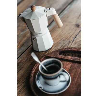 kavarna duka tryck scandi pressure cafe je prava poslastica za vse ljubitelje „male črne kave“. Njegova elegantna oblika in svetlo bež površina se odlično ujemata z barvo lesenega ročaja. Ta preprečuje, da bi se ročaj preveč segrel, zato je uporaba posode duka tryck scandi vedno prijetno enostavna. S prostornino 150 ml lahko pripravite 3 klasične espresse, zato je popoln aparat za kavo za vse, ki ljubijo okusno in močno kavo. Poleg tega lahko aparat za kavo duka tryck scandi uporabljate na vseh vrstah štedilnikov, tako da imate popolno svobodo uporabe. Želite skodelico svoje najljubše kave? Pripravite jo s kavnim aparatom duka tryck scandi!