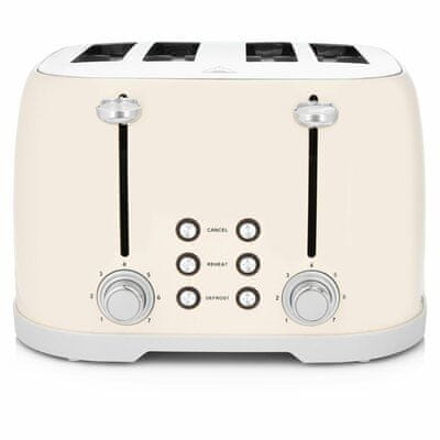 Toaster Duka Vintage odlikuje dizajn, vzet neposredno iz 50. let prejšnjega stoletja, ko so v gospodinjskih aparatih in elektroniki prevladovale pastelne barve in zaobljene oblike. Pomembno je, da je toaster ohranil sodobne funkcije, kot je odmrzovanje, ki je še posebej priporočljivo za kruh, vzet iz hladilnika ali zamrzovalnika. Element, ki odlikuje opekač, je tudi možnost hkratnega segrevanja do 4 hrenovk – z različnimi stopnjami segrevanja – odvisno od okusa gospodinjstva. Pomembno je, da so vse funkcije, ki so na voljo za levi grelni element, na voljo tudi za desnega, kar pomeni, da lahko hkrati opečete toast na dva različna načina! Toaster bo odlično dopolnil druge izdelke iz serije Duka Vintage.
