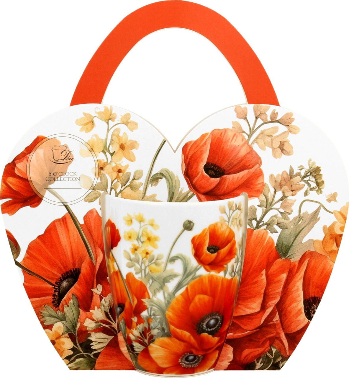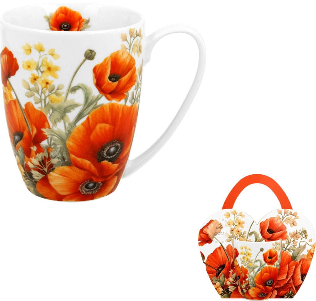 Elegantna skodelica iz porcelana za kavo ali čaj. Priljubljen motiv makovih cvetov. Porcelan, 360 ml. Lična embalaža, nadvse primerna za darilo Celoten opis