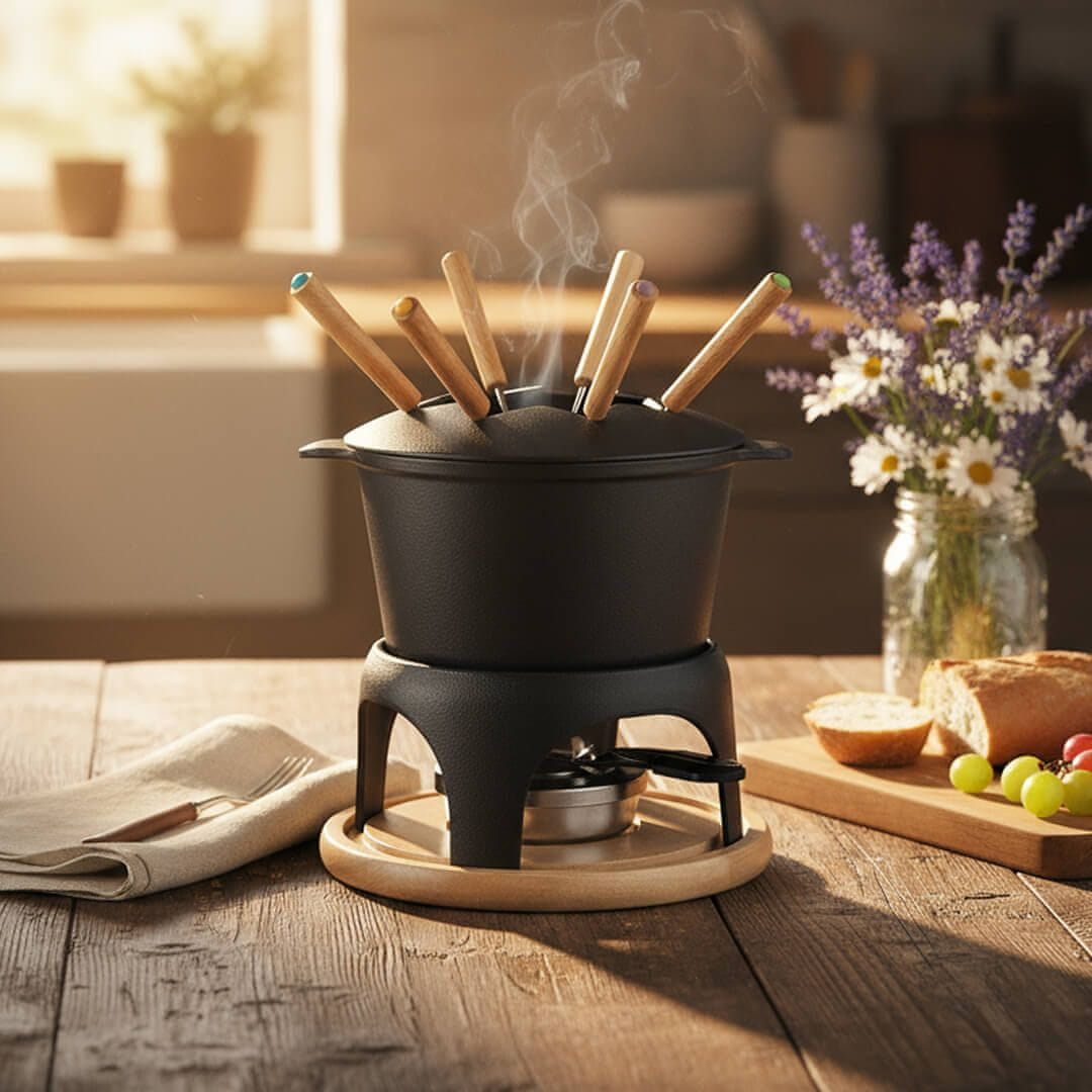 Set za fondi Betulla za 6 oseb je primeren za sproščene in okusne večere v družbi družine ali prijateljev. Pripravite lahko vse vrste fondijev, od klasičnega s sirom do burgundskega ali v njem skuhate majhne koščke mesa.