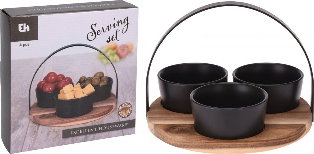 EXCELLENT Servirne sklede s pladnjem komplet 4 akacija / črna KO-278000510